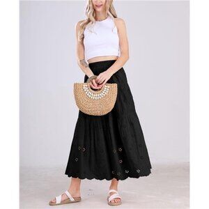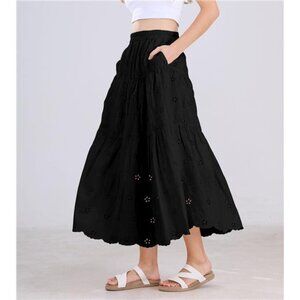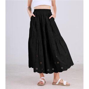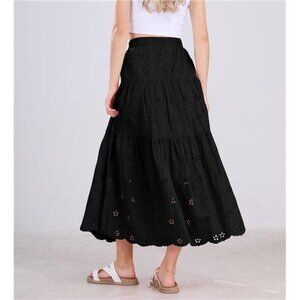 Women's Lace Embroidery Eyelet Boho Skirt Black