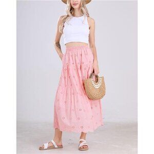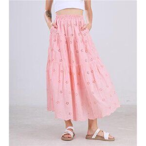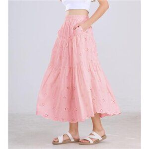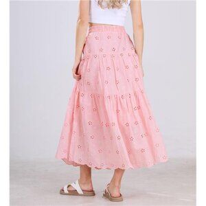 Women's Lace Embroidery Eyelet Boho Skirt Pink