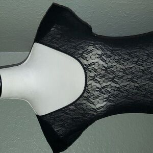 Womens Lace Mesh Black Rounded Neck Short Sleeve Sheer Top.
