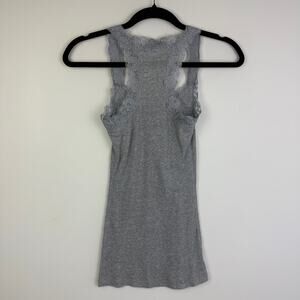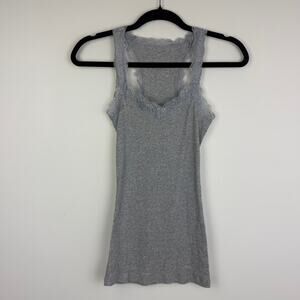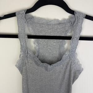 Womens Lace Trim Y2K Stretch Rib Knit Long Fitted Cami Oatmeal Grey Tank Top
