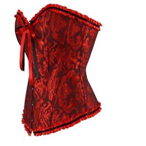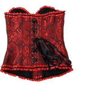 Women's Lace Up Boned Overbust Corset Body shaper top Red an Black
