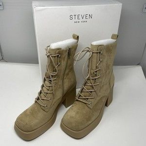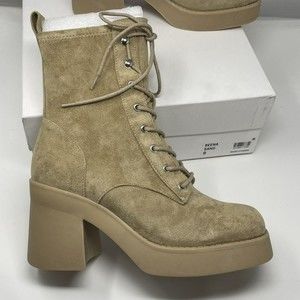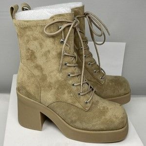 Women's Lace Up Combat boot US 9‎ Tan Beena sand Ankle Boots block 3.5” heel