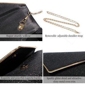 Features:Glitter clutch bag designed with shiny sequins fabric material and detachable chain strap,You can hold this clutch purse IN YOUR HAND or you can also use it as a SHOULDER BAG or CROSS BODY BAG