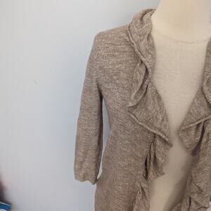 Women's Lafayette 148 Linen Blend Tan Khaki Ruffle Cardigan Small