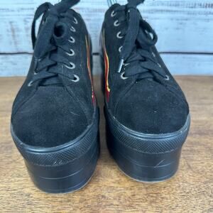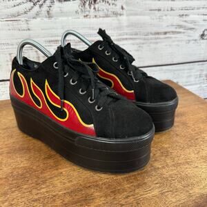 Womens Lamoda Black Red Flame Punk Grunge Platform Lace Up Shoes Spikes FLAW 10