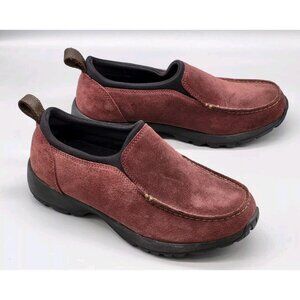 Womens Lands End Burgundy Suede Slip On Shoes Sz 8.5b