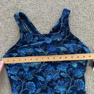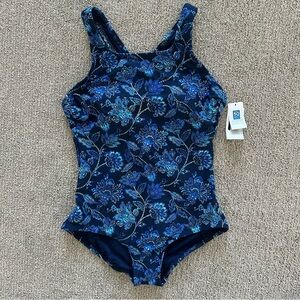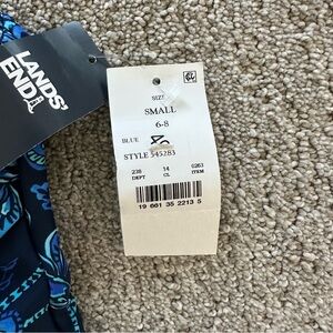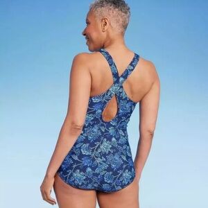 Women's Lands' End Full Coverage High Neck Tugless One Piece Swimsuit Blue Small
