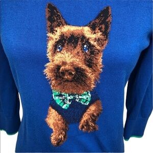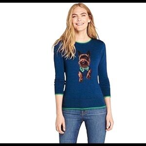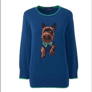 Women's Lands End Harbor Dog Sweater Blue Size Medium