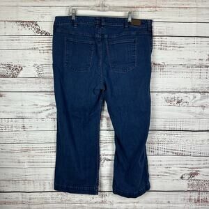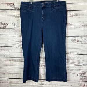 Womens Lands End Mid Rise Trouser Jeans Wide Leg Dark Wash Ankle Stretch Sz 20W