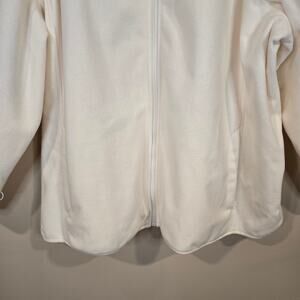 Excellent condition, women's Lands' End off-white, full zip, fleece jacket with zip pockets. This material is thicker/sturdier and doesn't stretch. There is a spot at the bottom by the zipper (may wash out).