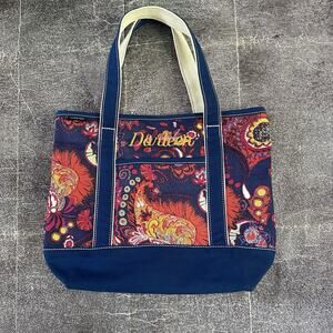 Womens Lands End Open Top Boat Tote Darleen Canvas Blue Floral Paisley Beach Bag