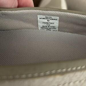 These are in pre owned condition with a couple small imperfections as pictured. Still good casual shoes to wear around. Color is called Field Khaki. They are Slip on, rubber soles for non slip, elastic at top for moving comfort, pull on tab in back.