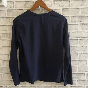 Women’s. Land’s End. Navy blue solid long sleeve shirt. 100% cotton. Preowned condition. No stains/tears. Size small.