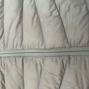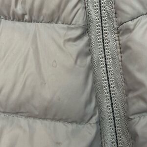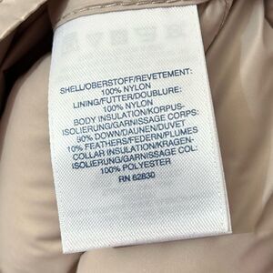 90% down, 10% feathers, there are a few stains that may come out but they aren’t really noticeable unless you’re looking for them, women’s Large 14-16, please be mindful of the measurements in the photos