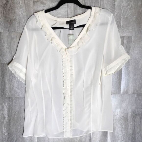 Lane Bryant Button Front Baby Doll Frill Top Size 14/16