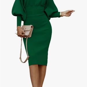 Women's Lantern Long Sleeve Elastic High Wasit Formal Bodycon Pencil Midi Dress