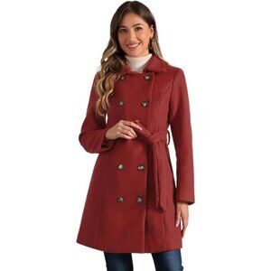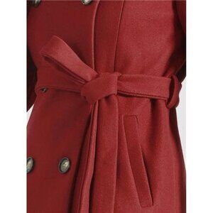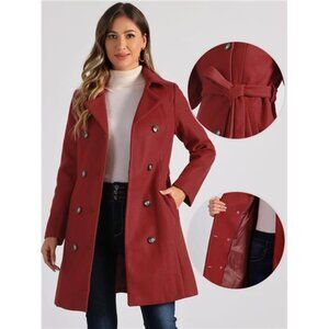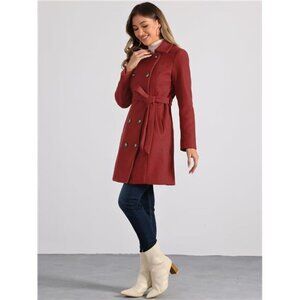 Women's Lapel Belted Outwear Double Breasted Red