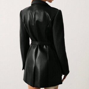 Women's Lapel Neck Long Sleeve Fabric & faux leather mix Blazer Jacket Black