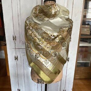 Women's Large 40' Square Scarf w/ Gold and White Baroque Floral Pattern