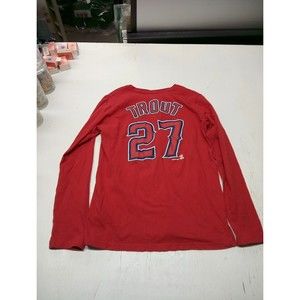 Women’s Large Angels Mike Trout T-Shirt MLB Anaheim Los Angeles Baseball Long Sl