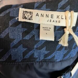 Women's Large Anne Klein Chambray Houndstooth Zip Denim Jacket NEW