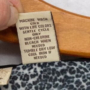 This vintage Daytrip blouse is a must-have for any fashion-forward woman. The black leopard print adds a touch of glamour to any outfit, and the sleeveless design makes it perfect for warmer weather. The V-neckline and ruffle accents give it a feminine touch, while the pullover closure makes it easy to wear. Made from lightweight, easy-care polyester, this blouse is perfect for travel, parties, or casual wear. The contrasting trim adds a unique touch, and the woven fabric type ensures durability. This blouse is a great addition to any wardrobe, and it's sure to turn heads with its bold leopard print. This blouse is gently used in good condition. Length 28", pit-pit 18"