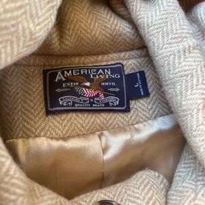 Women's Large Beige/Tan Toggle Wool Coat Autumn Ready **flaw