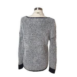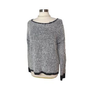 Women's Large Black White Sweater Fuzzy Chunky Knit Long Sleeve Soft Pullover