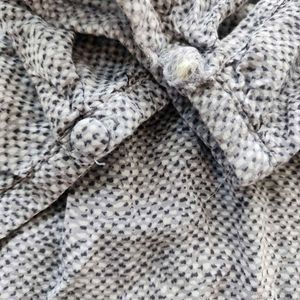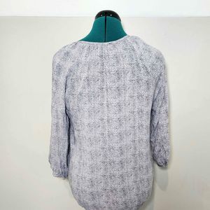 Women's Large Black and White Anne Carson Print Top Shirt Business Casual Blouse