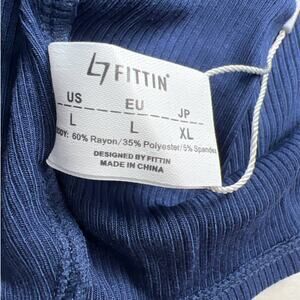 FITTIN Long Sleeve Workout Crop Tops for Women Deep V Neck Athletic Ribbed Cross Fitted Yoga Tops Gym Fitness Tee Shirts - LARGE - NAVY BLUE