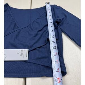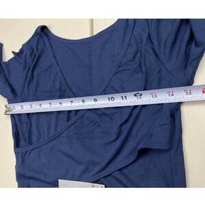 Women's Large Blue Long Sleeve Workout Gym Crop Top Deep V Neck Yoga Shirts