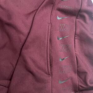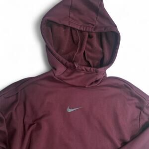 Burgundy Nike hoodie with a streetwear vibe large women’s