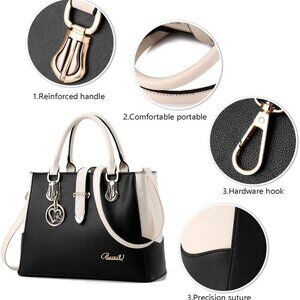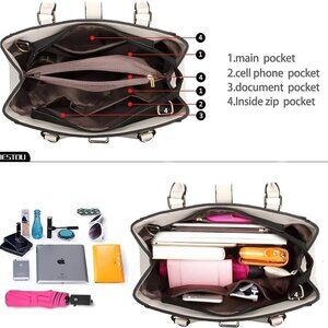Features: This spacious tote is made from high-quality synthetic leather that’s soft, anti-scatch, and waterproof — perfect for daily use. It easily fits a 9.7-inch tablet and has six handy pockets for organization: two main compartments, a layered section, a zipper pocket, a phone pocket, and a certificate slot. It’s versatile enough to be carried as a tote, satchel, crossbody, or shoulder bag, ideal for work, shopping, dates, or parties.