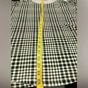 This Black & White checkered Cold Shoulder top has only been worn 1 times. I didn’t see any flaws. It is a size large. This top is made of 60% cotton and 40% Modal- it has some stretch. The bust approximate size is 22” and the approximate length is 25”. Machine washable. Smoke free home.