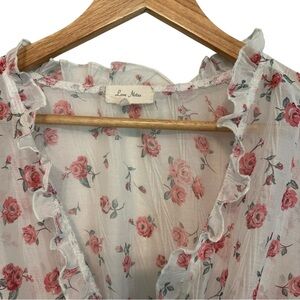 Women's Large Cropped Chiffon Sheer Rose Floral Ruffled Cottage Soft Casual Top