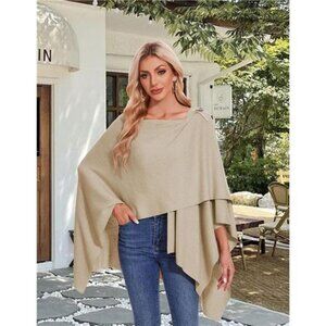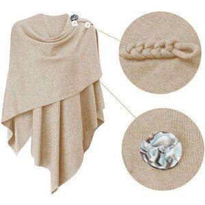 *VERSATILE DESIGN:Crossover front and the loop or button on the shoulder,to tuck the one end into.They hold the wrap in place, which makes it comfortable to wear,recommend using a brooch to secure.Irregular curved hem to create artful drapes.It is very classy and versatile for you to wear as a poncho,shawl wrap, cape,cardigan or a scarf.