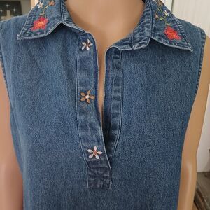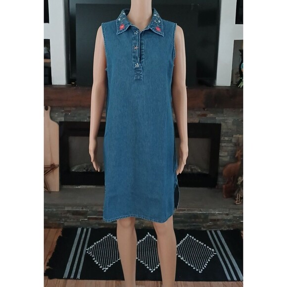 Women's Large Denim Dress Cotton Embroidered Lightweight Summer Spring Beachy