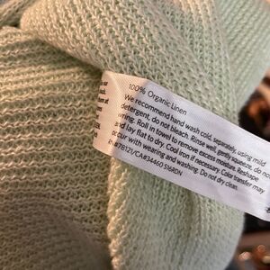 Crafted from luxurious organic linen, this Eileen Fisher cardigan boasts a light green hue that adds a touch of serenity to any ensemble. The women's large size ensures a comfortable fit for those who prefer their clothing with a relaxed yet stylish touch. The sweater's open-knit design allows for breathability and a comfortable wear across all seasons. Its versatile cardigan style can be easily paired with a variety of outfits, making it an essential addition to your wardrobe that blends effortlessly with both casual and formal attire.