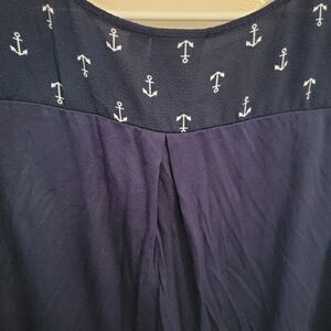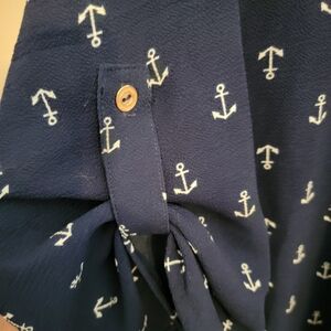 Womens Large Janetchung Navy Blue Anchor Three Quarter Sleeve Blouse