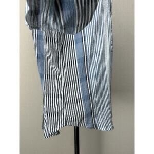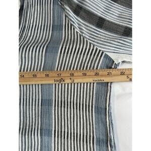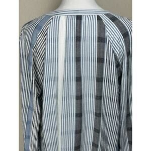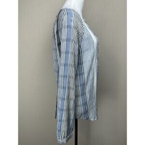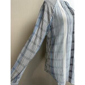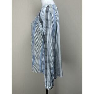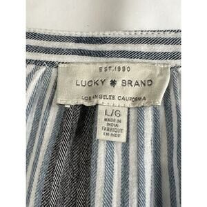 Women's Large Lucky Brand Blue Striped Long Sleeve Blouse Top V-Neck Casual