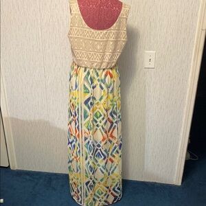 Women's Large Luxology Elegant Blue Graphic Maxi Dress & Flowing Silhouette