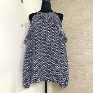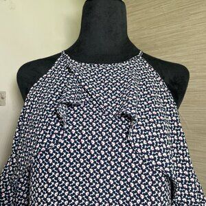 Women's Large Michael Kors Navy Floral Cold Shoulder Blouse