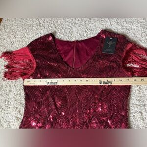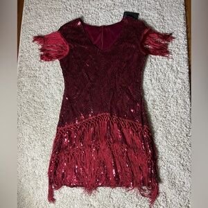 Women’s Large Red Sequin Fringe 1920s Dress NWT