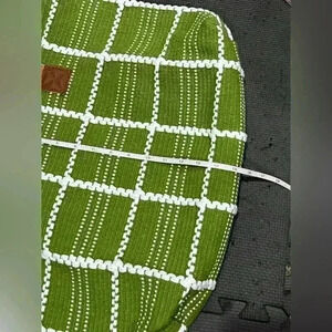 Women’s Large Shoulder Boho Style Tote Bag, Green/White, measures 19”x 15”