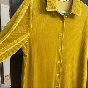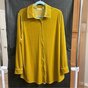 Women’s Large Soft Surroundings Gold Button-Up Shirt Relaxed Glitter Shimmer