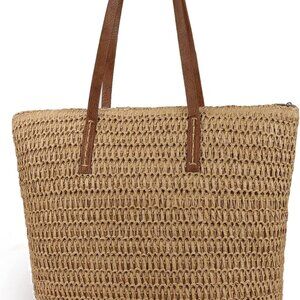 Womens Large Straw Tote Bag Handwoven Summer Beach Shoulder Purse