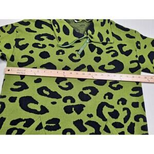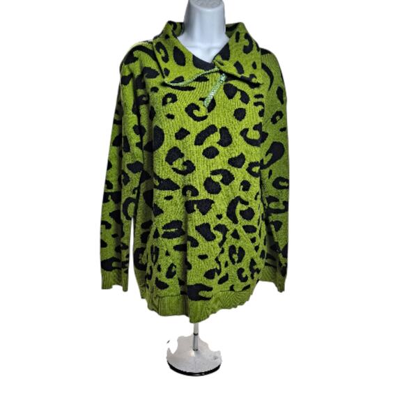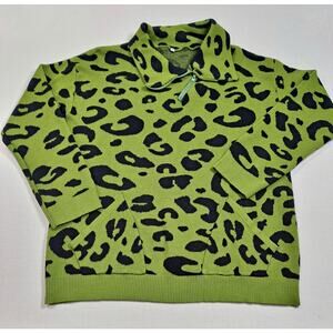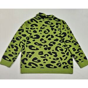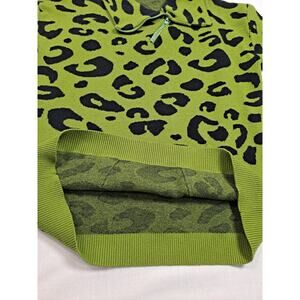 Women's Large Sweater Lime Green/Black Leopard Print Quarter Zip Neckline