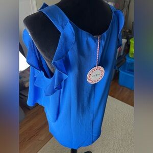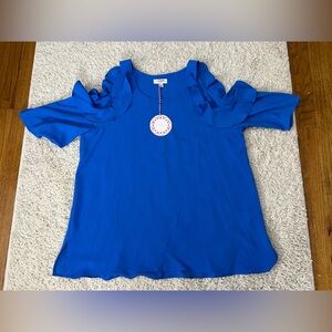 Women’s Large Umgee Blue Ruffled Women's Top NWT
