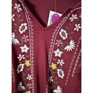 Adorable, stretchy V-Neck Crop Top with non embroidered Floral Design features Elastic Bottom Hem and at Ends of Sleeves