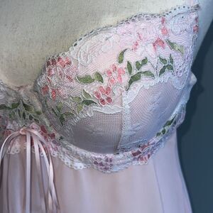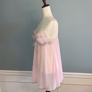 The detail on this lingerie, baby doll Teddy is absolutely gorgeous. There is lace and sheer netting plus overlay of floral detail. Beautiful. Adjustable straps.